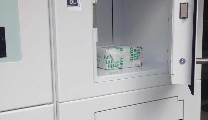 Da oggi è possibile ritirare il prodotto richiesto (non disponibile immediatamente in farmacia) in qualsiasi momento, comodamente dal distributore, senza vincolo di orario. Il cliente, una volta ricevuto l’avviso di prodotto disponibile tramite sms, unitamente al codice segreto, potrà ritirare dal distributore h24 il proprio ordine.